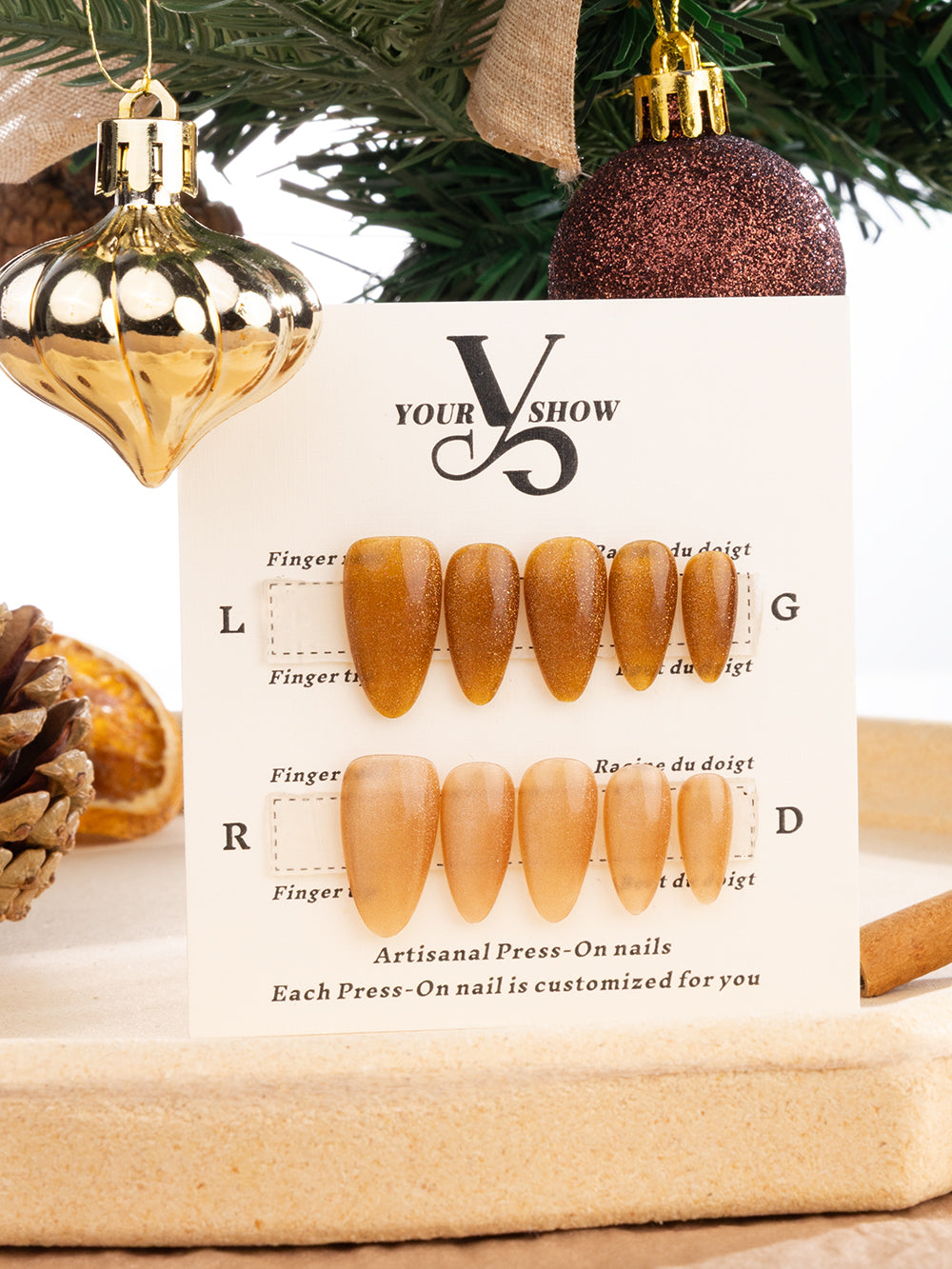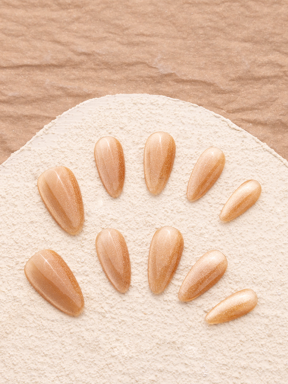Façonnés 100 % à la main avec un gel effet œil-de-chat professionnel de haute qualité, ces press-on nails en forme amande captent la lumière avec un éclat délicat et chatoyant, parfaite pour sublimer votre style tout au long de la saison hivernale.