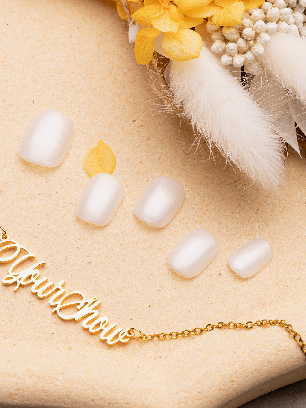 These false nails are 100% handmade using high-quality professional gel. Lightweight, reusable, and easy to apply, these press-on nails offer a soft and romantic elegance—perfect for those who love subtle light and understated sparkle.